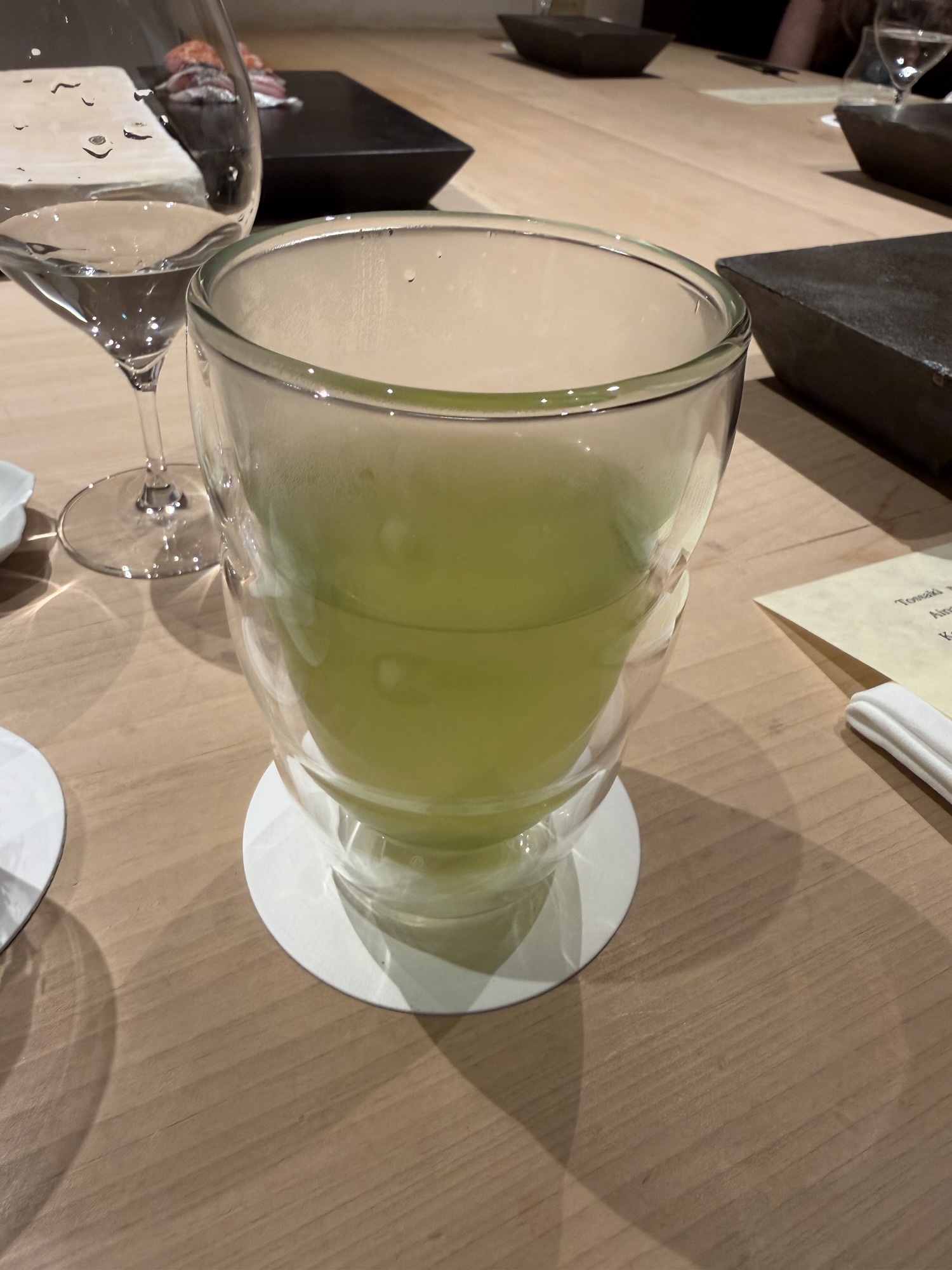 Second drink was a twist of a Sazerac (mango sorbet, absinthe, sweet wine, smoky whisky). Also look at the shape of this ice cube. It’s an octagon! And it has an actual mango sorbet on top of it.