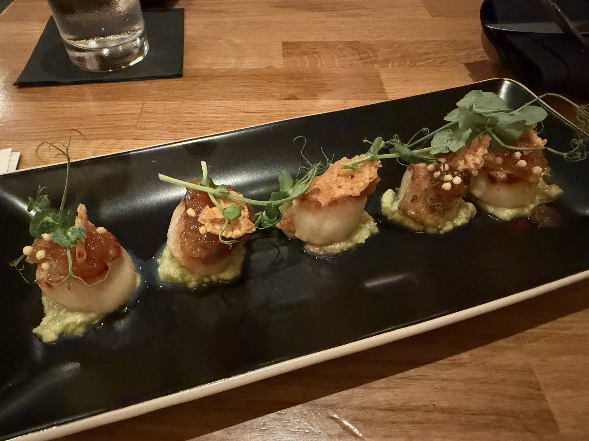For food, got the scallops and the salmon. Both did the job.