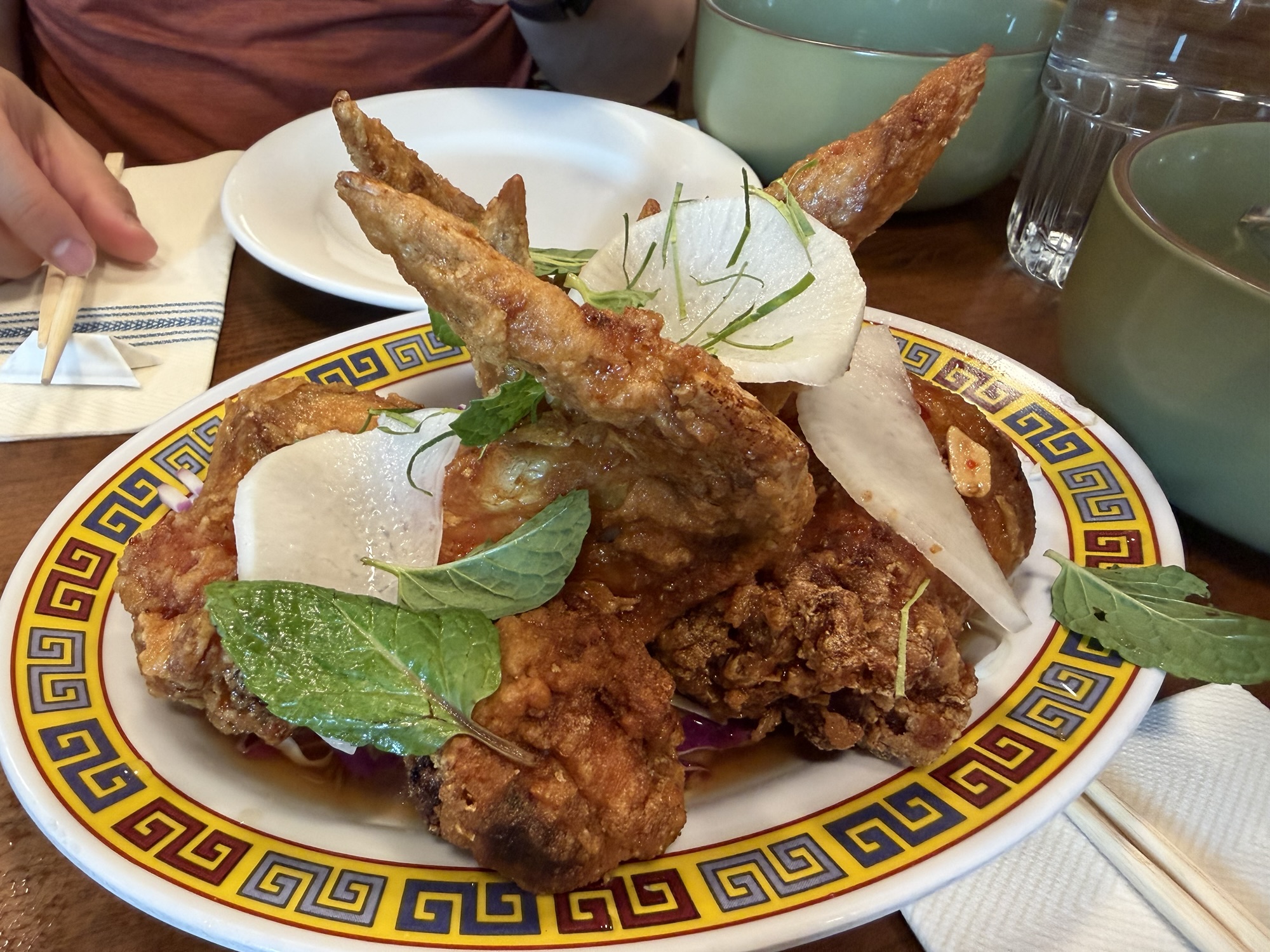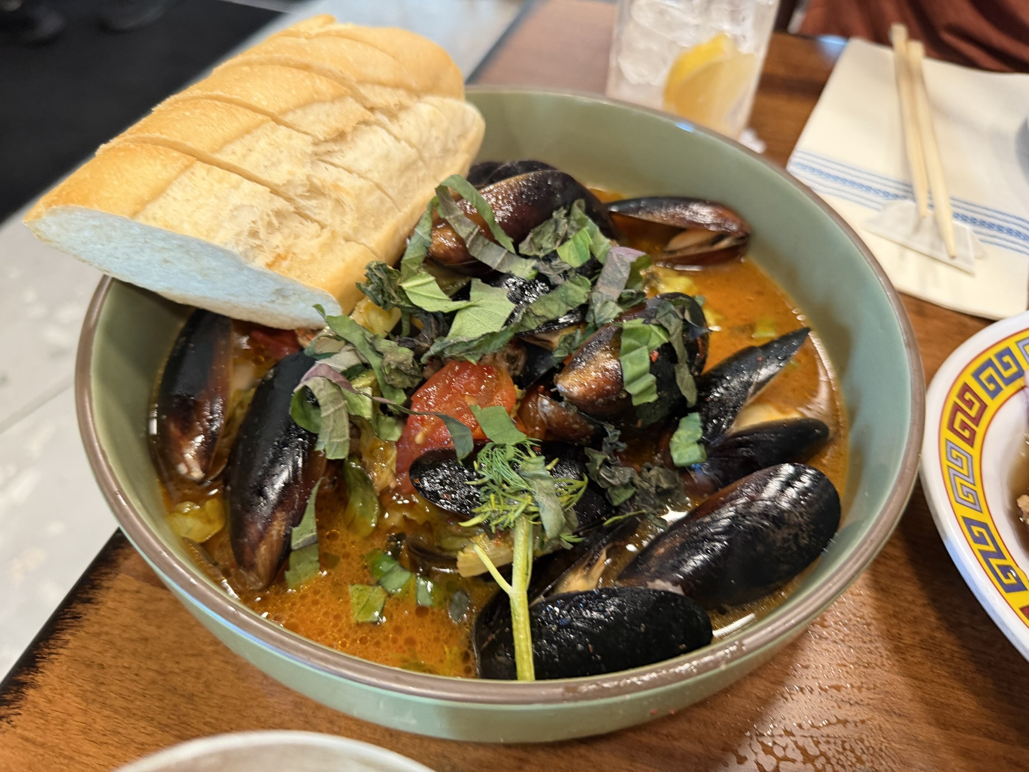 For food got the chicken wings (which apparently they’re known for), the pho French dip banh mi, the pho oxtail, and the mussels. All but the last item were excellent.