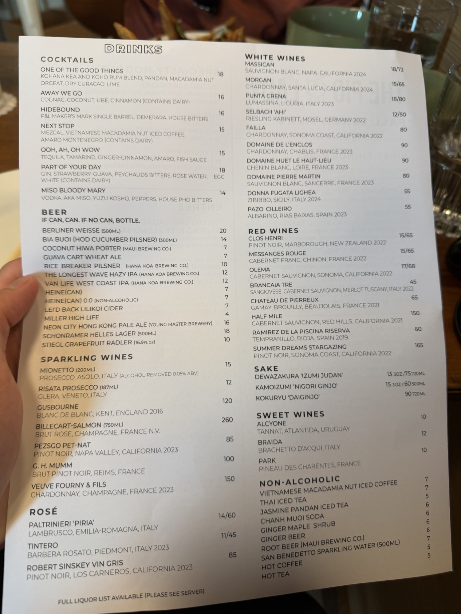 For drinks, tried One of the Good Things (a margarita, but rum based), and their version of an espresso martini (uses mezcal instead of vodka, and uses Vietnamese coffee). Would get the first drink again.
