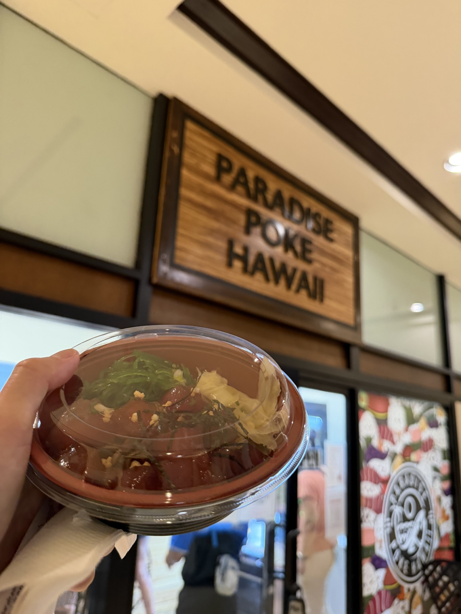 Got the shoyu poke, which was good because it was slightly sweet, which is what I wanted. I will also say that the serving size of the bowl was the correct amount for me.