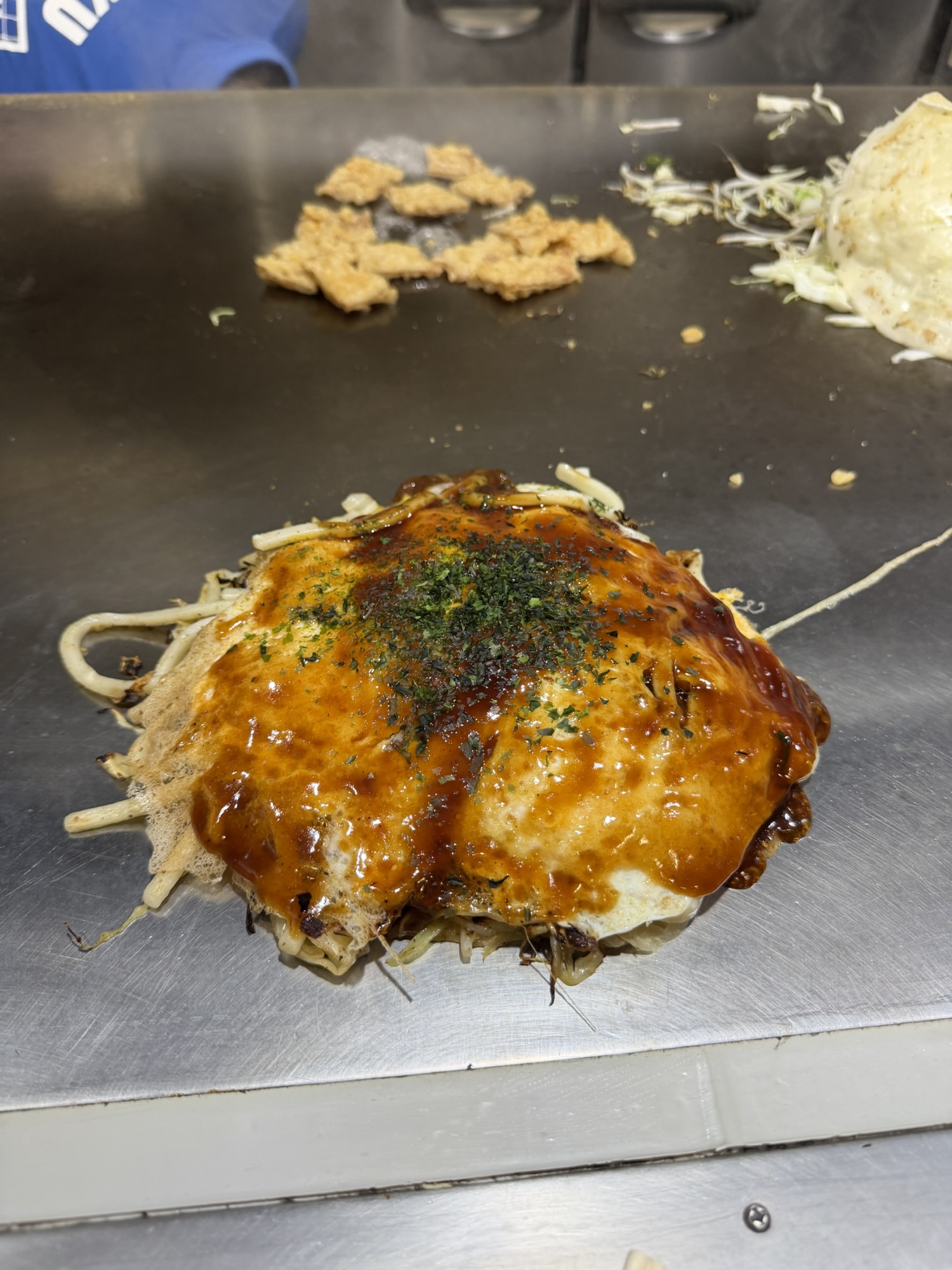 Went to this Okonomiyaki restaurant after the original place I wanted to go to was closed (Okonomimura). And this is the first time I’m trying Okonomiyaki Hiroshima style.